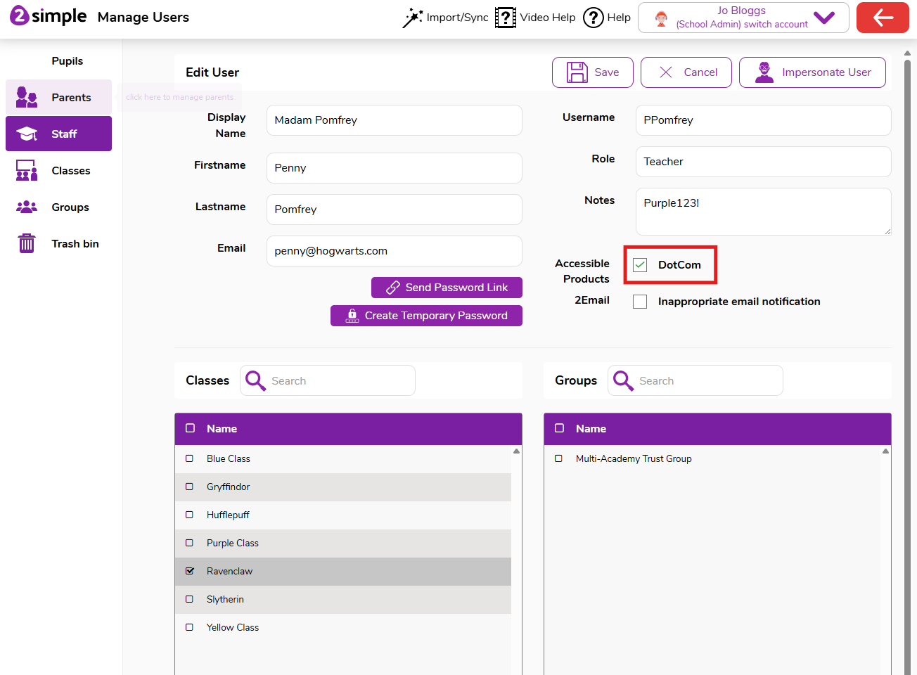 If you are Purple Mash user and a DotCom user, you will need to ensure that you’ve enabled DotCom access to your staff members.